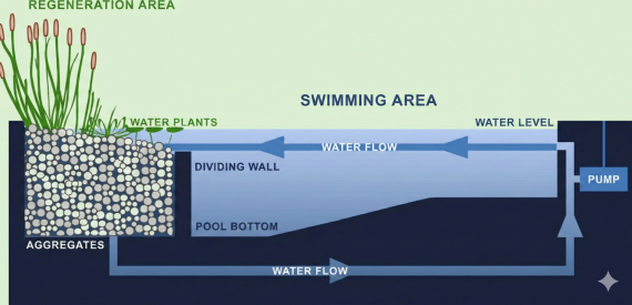 This is the basic principle of a swimming pond - to use the natural purifying properties of plants and micro-organisms to sustain clean, clear and healthy water.